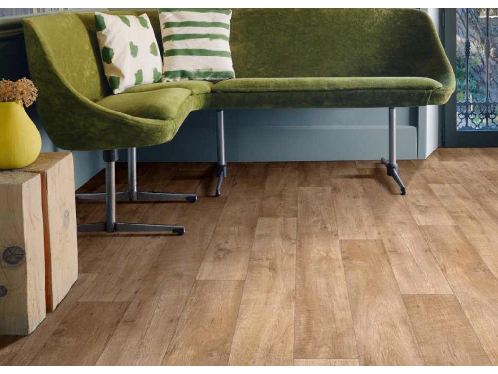 - Vynikající tvarová paměť vinylu s textilní podložkou výrazně zabraňuje povrchovým otlakům od nohou nábytku.