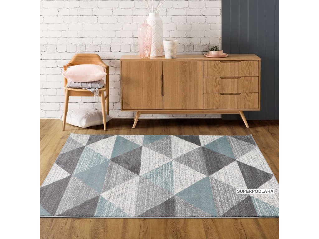 Moderní koberec s geometrickými tvary. Koberec je velmi praktický a snadno se čistí. Hodí se takřka kamkoliv, jak do ložnice, obývacího pokoje či do předsíně.